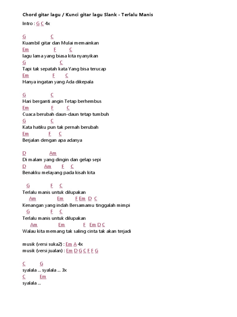 Kunci Gitar Lagu Kereta Terakhir Slank Kunci Gitar Gitar Lagu